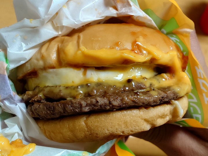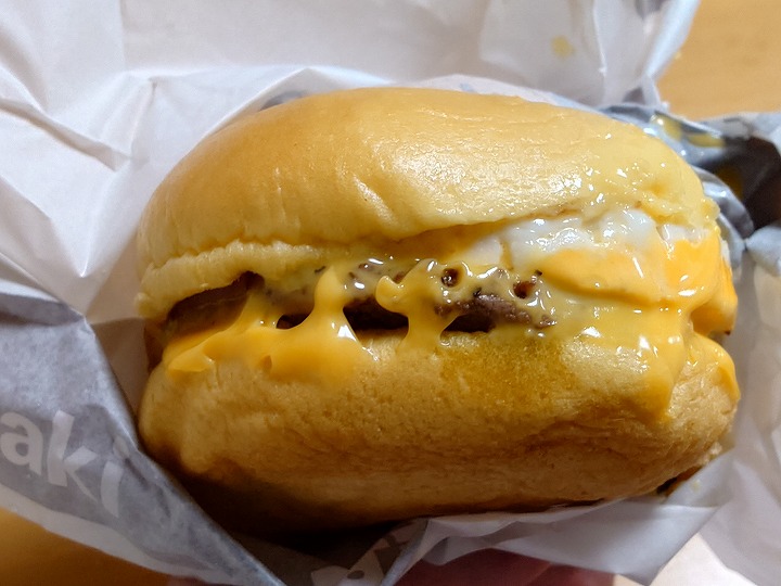 チーズもたっぷりでめちゃくちゃ美味しいとの事でした。食べたかったハンバーガーを食べられて大満足の様子でした(笑)。