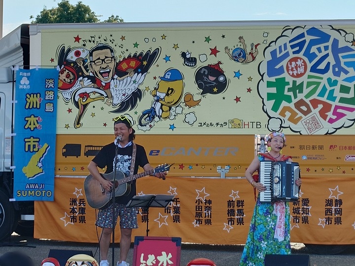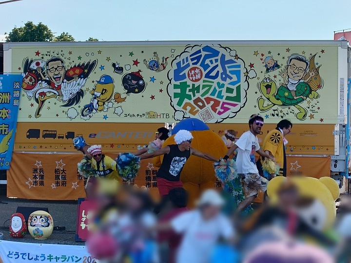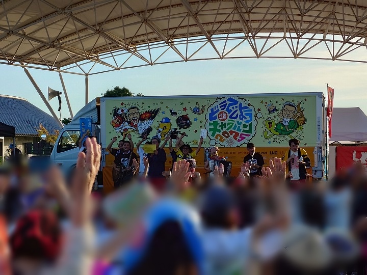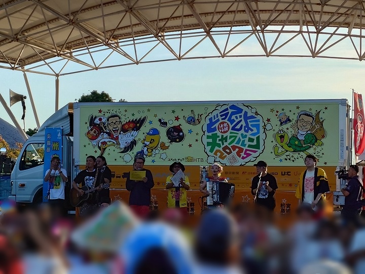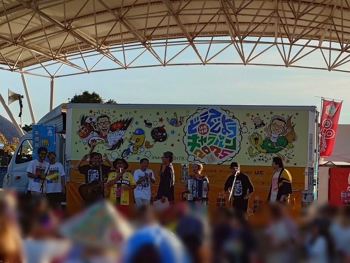 しかしこの日キャラバンはこれで終わりではありません!洲本会場はどうでしょうキャラバンの最終日。最終日にはなんと花火が上がるのです!
