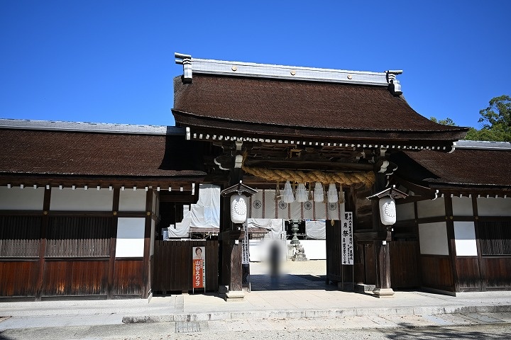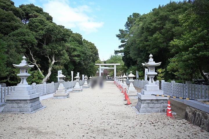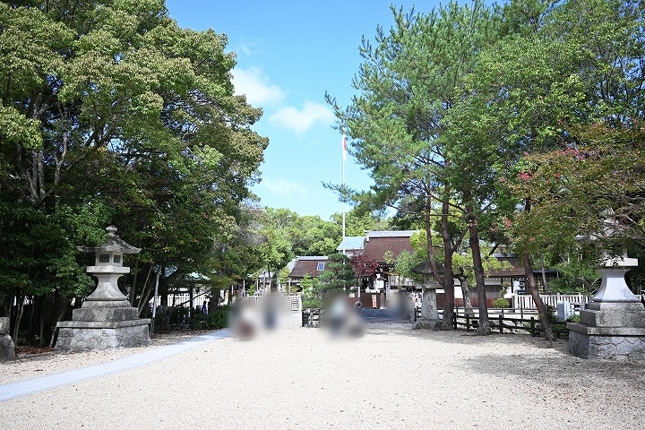 正門前は広い参道になっていて、奥には鳥居が左右に見えました。