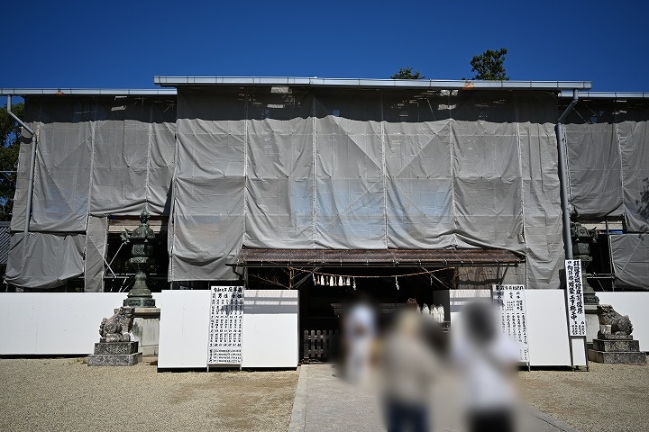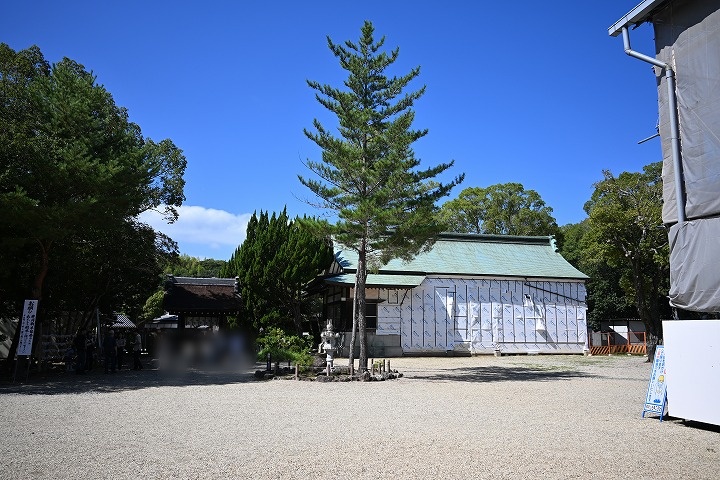 拝殿の左奥の建物も外壁が工事中の様でした。