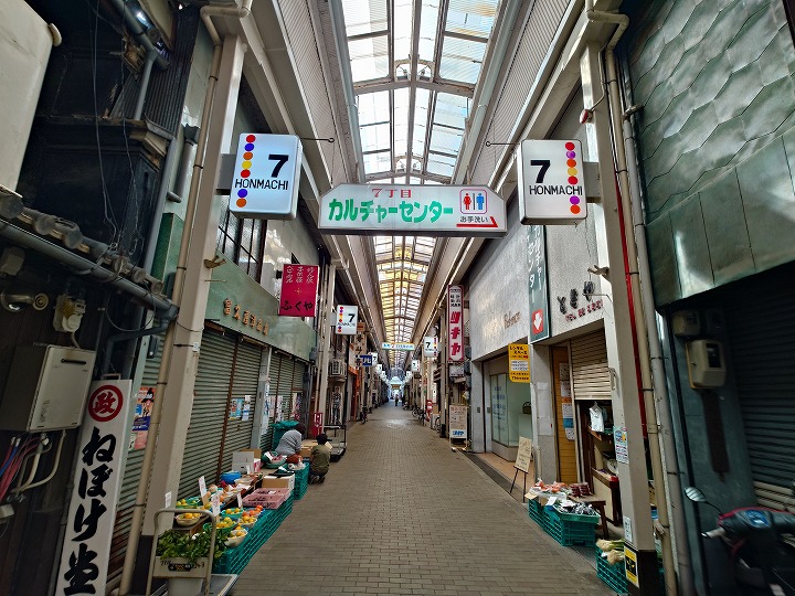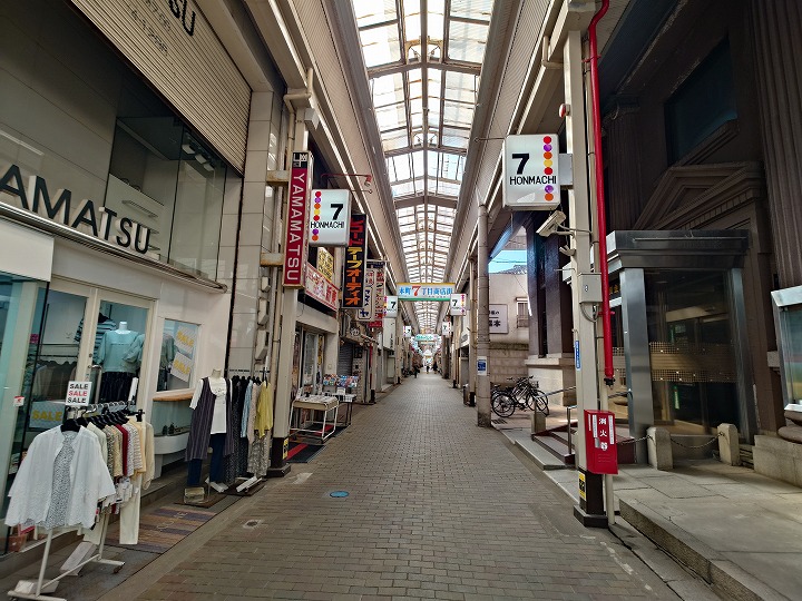 地方の商店街ってほぼシャッター街になってる所が多いけど、この商店街は多くのお店が営業してました。