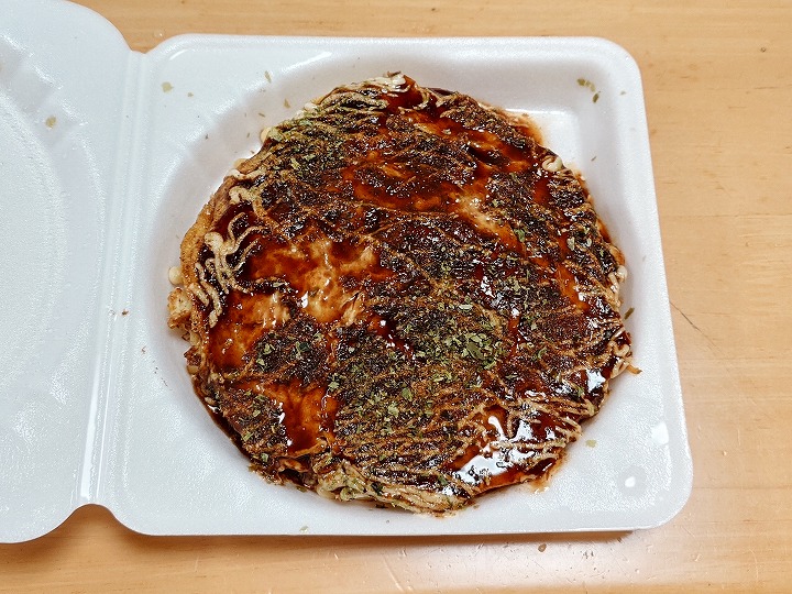 買い物を済ませてから再び「はこべ」さんへ行き、出来上がったお好み焼きを受け取って帰宅。