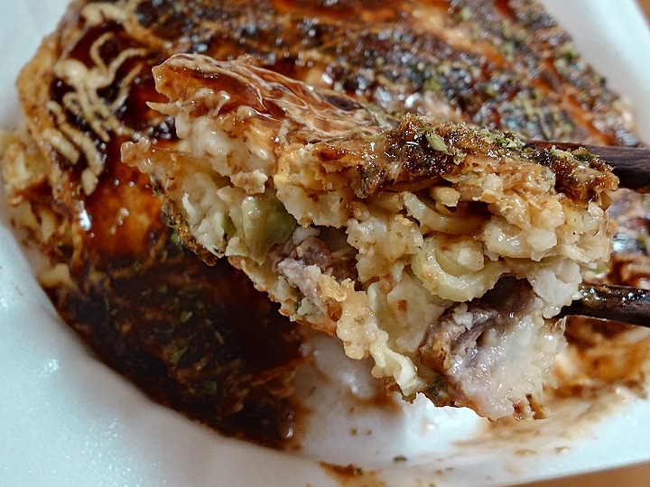 この日は焼きそばも食べたかったので、最初は「広島焼」にしようかと思ったんですが、関西風のお好み焼きが食べたかったのでモダン焼きにしたのでした。