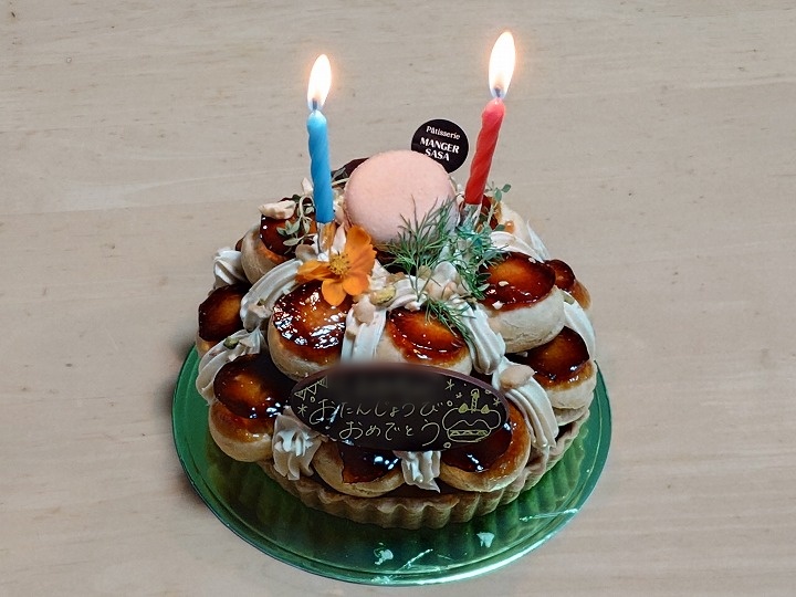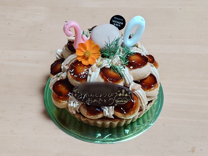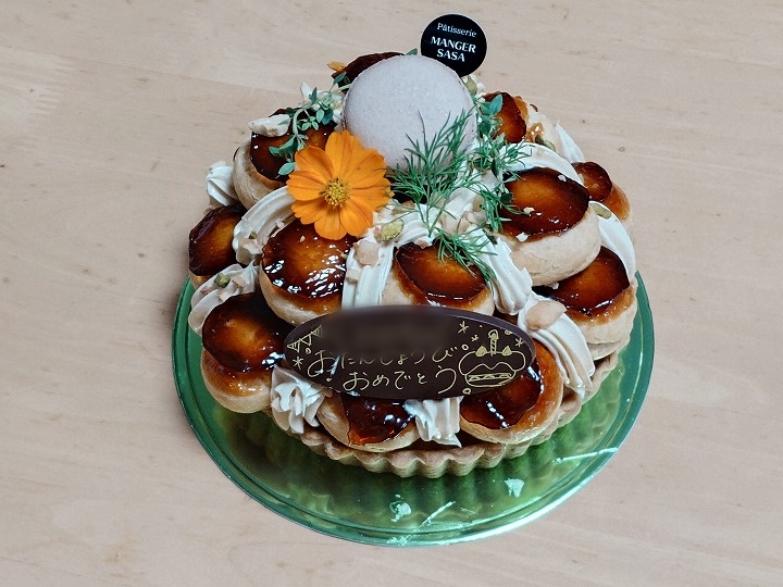 「マンジェ・ササ」さんにはお祝いのケーキを注文する事が多くて、その度に素敵なケーキを作って頂いて本当にお世話になってます。いつもありがとうございます!