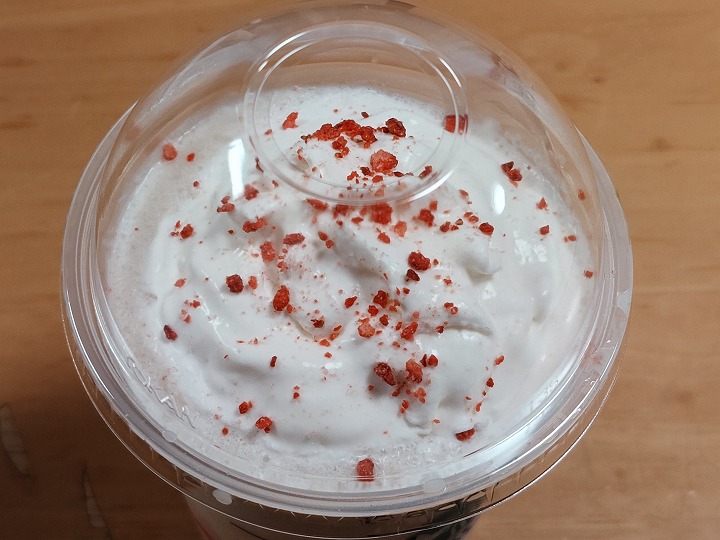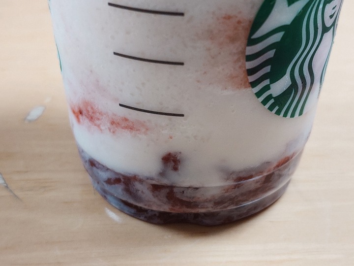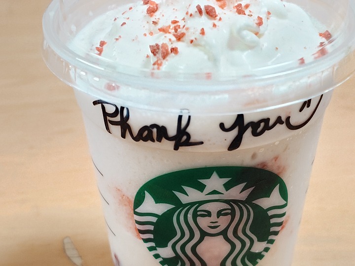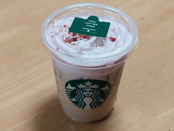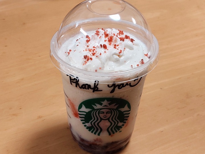 長女は「ストロベリー ムース & ジョイフルメドレー ティー ラテ」のアイス、奥さんは「抹茶 ティー ラテ」のホットを、自分は「ストロベリー & ジョイフルメドレー ティー フラペチーノ」にしました。