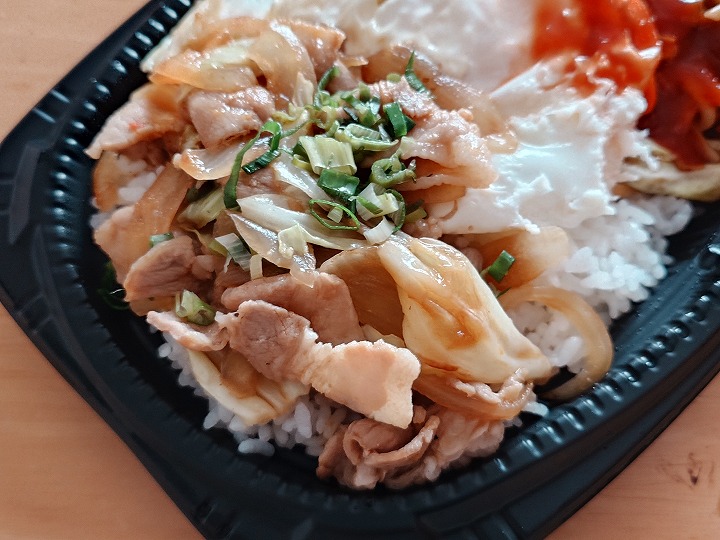 「とんから丼」はよく食べるんですが、それにプラスして、目玉焼きとネギマヨが追加されてます。