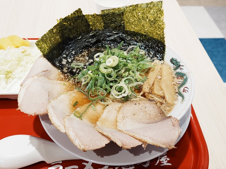 ちなみに、ねぎもセルフサービスで取れる様になってるので、少し足してあります。デフォルトはもう少しねぎが少ないです。
