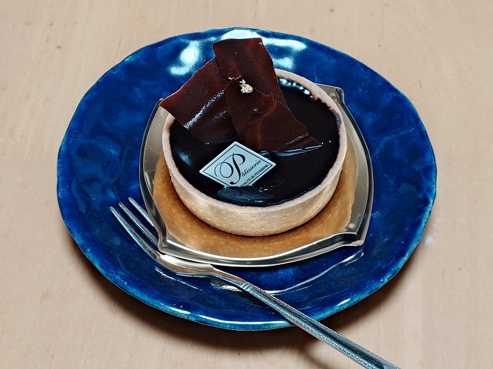 チョコソースの下にはガナッシュ、更にチョコスポンジ生地と、色んなチョコの食感と味わいが楽しめるタルト。