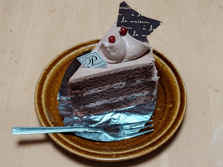 チョコスポンジ生地にチョコ生クリームがたっぷり。チョコ尽くしでめちゃくちゃ美味しいです。