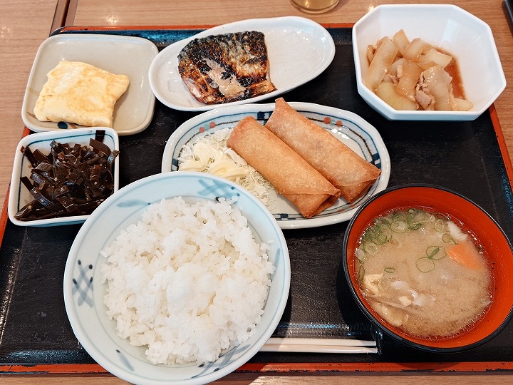 セルフ形式の食堂は、こうやってオリジナルの定食を作れるのが楽しいです。