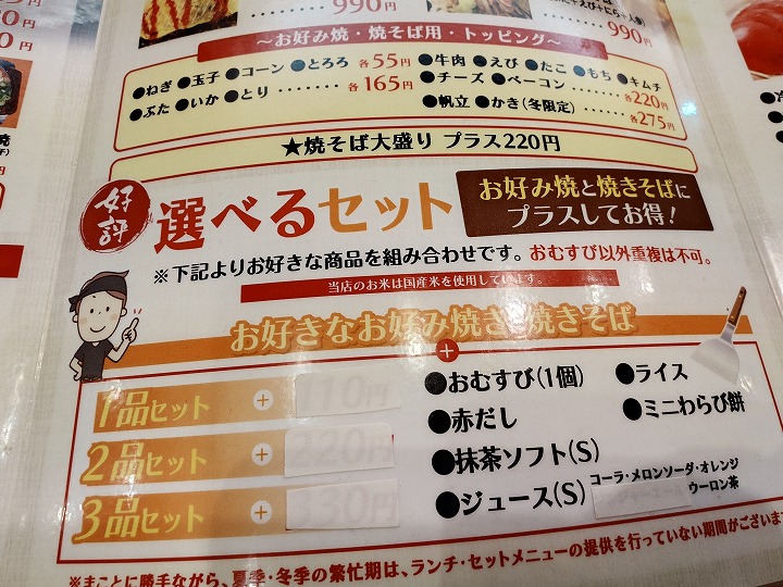 お好み焼きとか焼きそばを食べてると、一緒にご飯も食べたくなるのは自分だけでしょうか(笑)。
