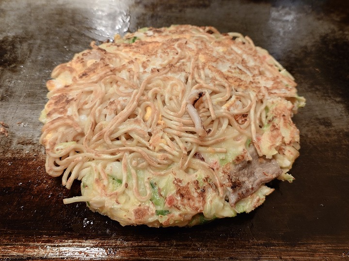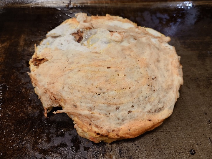 モダン焼きってどうやって焼くんだったか思い出しながら焼いていきました。